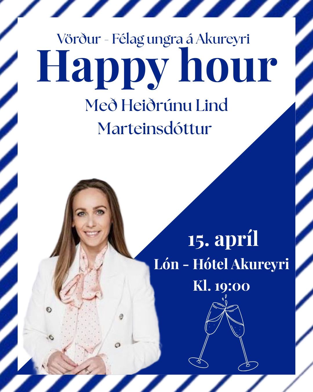 Vörður, félag ungra sjálfstæðismanna, heldur Happy hour með Heiðrúnu Lind Marteinsdóttur, framkvæmdastjóra Samtaka fyrirtækja í sjávarútvegi, í Lóni, sal á Hótel Akureyri, Hafnarstræti 73, miðvikudaginn 15. apríl nk. kl. 19:00.