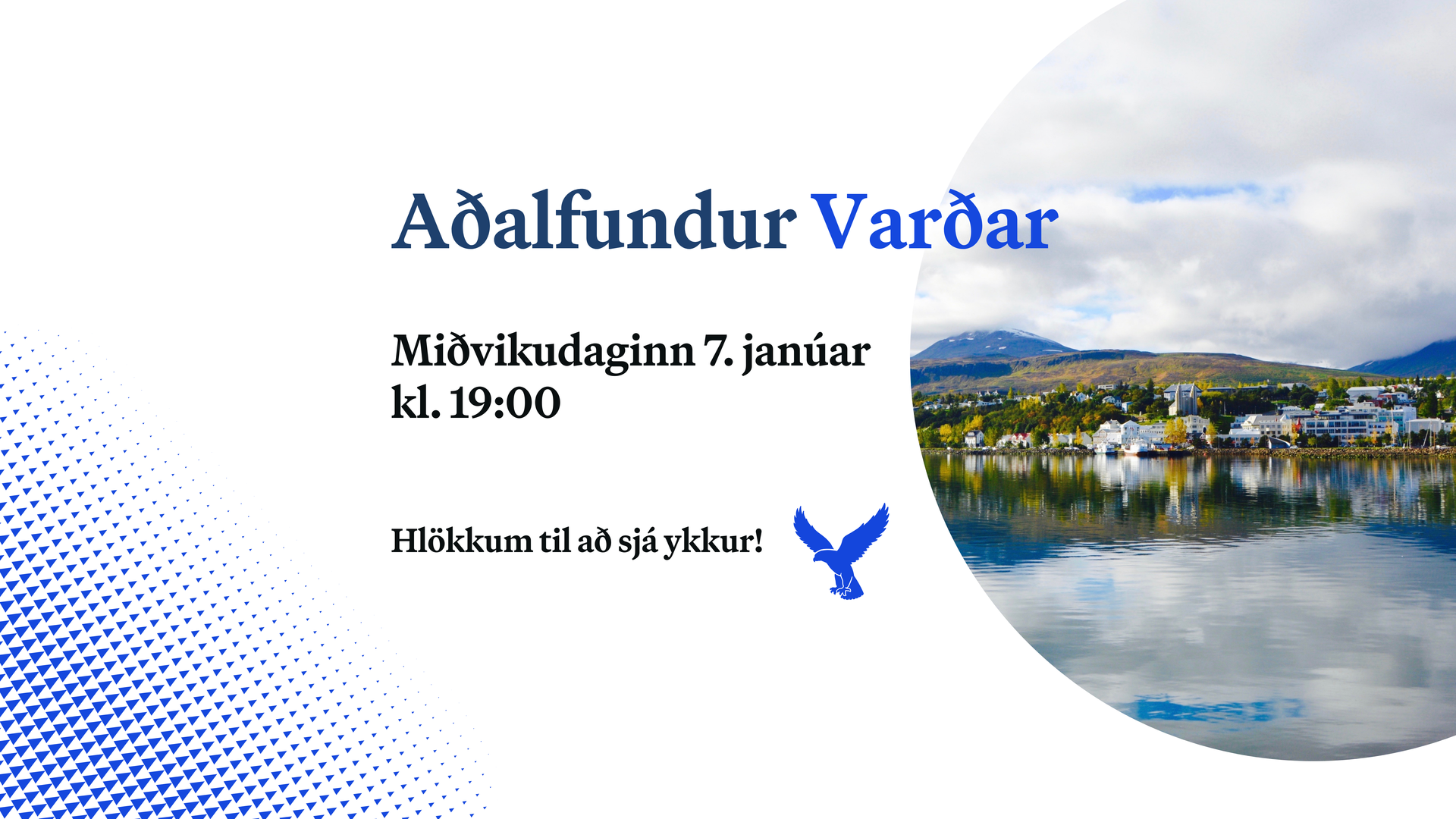 Kæri félagsmaður Varðar Boðað er til aðalfundar Varðar miðvikudaginn 7. janúar kl. 19:00 í Geislagötu 5 (gamla Arion banka húsið - gengið inn að norðan). Dagskrá: 1) Kosning fundarstjóra og fundarritara 2) Skýrsla stjórnar 3) Skýrsla gjaldkera 4) Lagabreytingar 5) Umræður og afgreiðsla stjórnmálaályktunar 6) Kynning á framboðum til formanns 7) Kosning formanns 8) Kynning á framboðum til stjórnar 9) Kosning stjórnar 10) Aðrar kosningar 11) Önnur mál Vakin er athygli á því að hægt er að skila inn framboði í pósti til formanns ( isaksvavars04@gmail.com ), í formsskjali hér að neðan eða með því að bjóða sig fram á fundinum sjálfum. Lagabreytingartillögur þurfa að berast formanni í pósti ( isaksvavars04@gmail.com ) eða í formsskjali hér að neðan, eigi síðar en tveimur sólarhringum fyrir fundinn. Óskað er eftir að stjórnmálaályktanir berist með sama fyrirvara og á sama tölvupóstfang og lagabreytingartillögurnar. Framboð til stjórnar: https://forms.gle/9nyJK96bJSEqLCQG7 Lagabreytingartillögur: https://forms.gle/QcSbmHpr29EpCXw26 Fyrir hönd stjórnar Varðar, Ísak Svavarsson Formaður